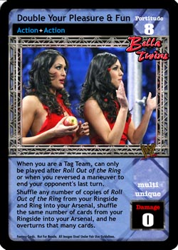 When you are a Tag Team, can only be played after Roll Out of the Ring or when you reversed a maneuver to end your opponent's last turn. Shuffle any number of copies of Roll Out of the Ring from your Ringside and Ring into your Arsenal, shuffle the same number of cards from your Ringside into your Arsenal, and he overturns that many cards.
