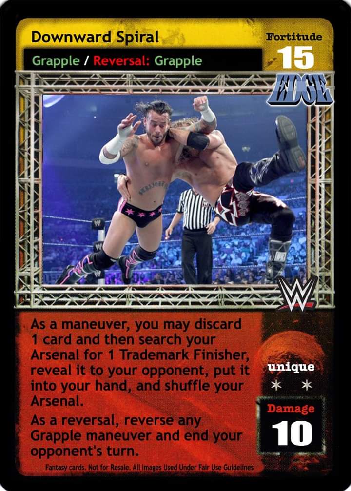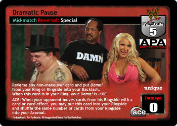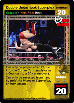 Can only be played after Throw Into the Corner Turnbuckle or as a Counter (to a 5D+ maneuver). Can only be reversed from hand by Hold the Phone or Superplex, or from Arsenal.