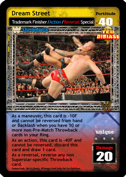 As a maneuver, this card is -10F and cannot be reversed from hand or Backlash when you have 10 or more non-Pre-match Throwback cards in your Ring. As an action, this card is -40F and cannot be reversed, discard this card and draw 1 card. As a reversal, reverse any non-Superstar-specific Throwback card.