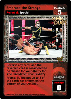 Reverse any card, and the reversed card is considered to be chosen for your Ability for The Interdimensional Oddity. Promo: 5, and put up to 3 of the cards not chosen on the bottom of your Arsenal.