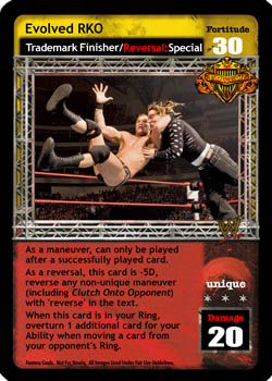 As a maneuver, can only be played after a successfully played card. As a reversal, this card is -5D, reverse any non-unique maneuver (including Clutch Onto Opponent) with 'reverse' in the text. When this card is in your Ring, overturn 1 additional card for your Ability when moving a card from your opponent's Ring.