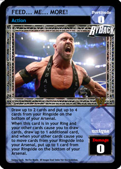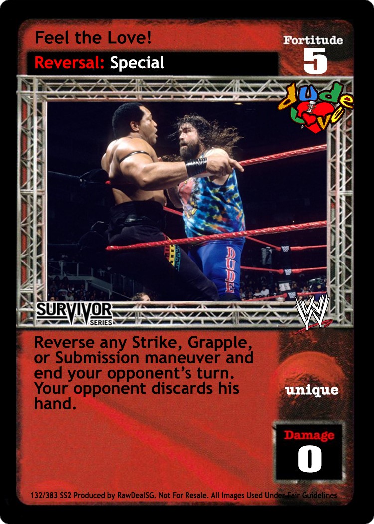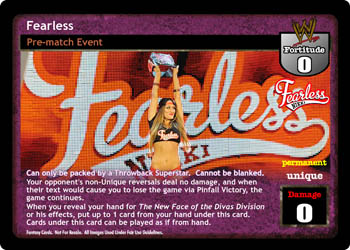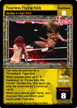 Can only be packed by a Throwback Superstar. When played after an F: 0 maneuver or Throw Into the Corner Turnbuckle, this card can only be reversed by 2 reversal cards. When you reveal your hand, you may put this card from your hand under Fearless.