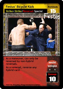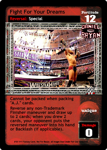 Cannot be packed when packing 'A.J.' cards. Reverse any non-Trademark Finisher maneuver and draw up to 2 cards; when you drew 2 cards, your opponent puts the reversed maneuver into his hand or Backlash (if applicable).