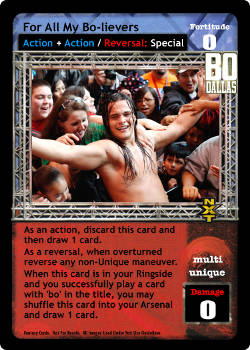 As an action, discard this card and then draw 1 card. As a reversal, when overturned reverse any non-Unique maneuver. When this card is in your Ringside and you successfully play a card with 'bo' in the title, you may shuffle this card into your Arsenal and draw 1 card.