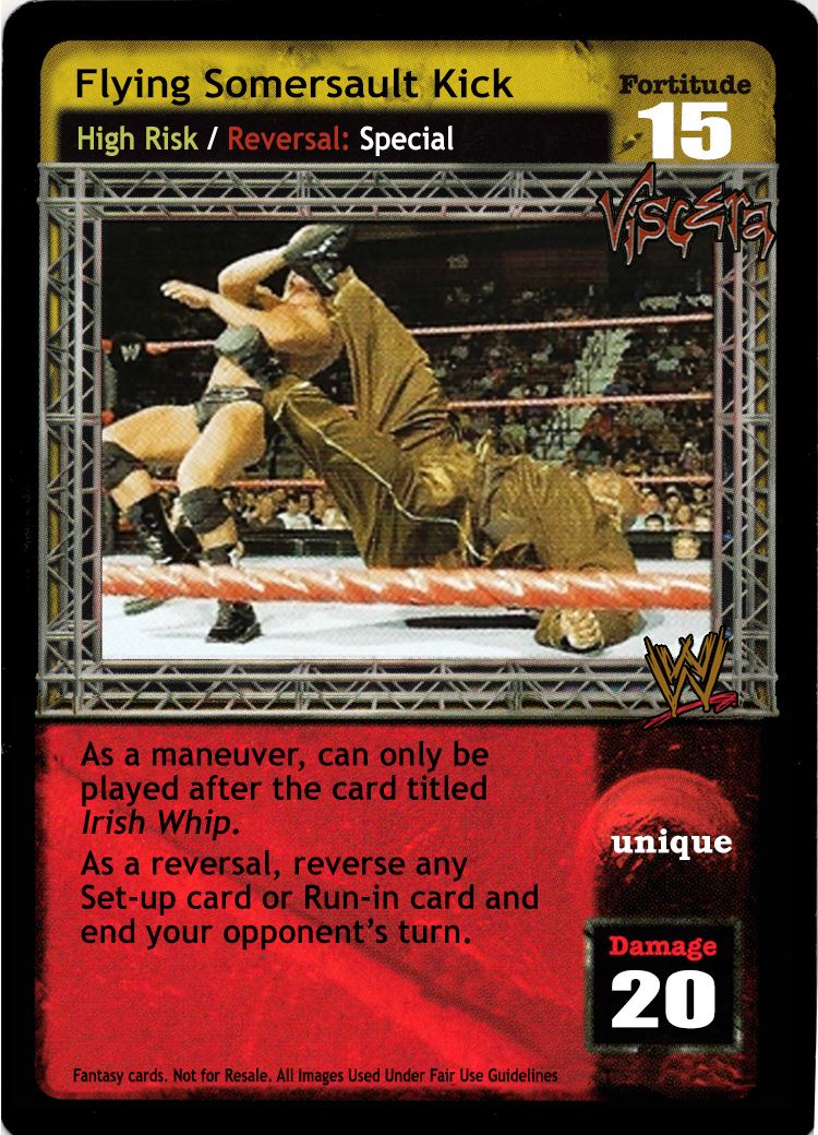 As a maneuver, can only be played after the card titled Irish Whip. As a reversal, reverse any Set-up card or Run-in card and end your opponent's turn.