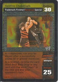 As a maneuver, can only be played after a successfully played 5D or greater maneuver. As a reversal, reverse the card titled Back Body Drop or any card with the word "slam" in the title and end your opponent's turn.