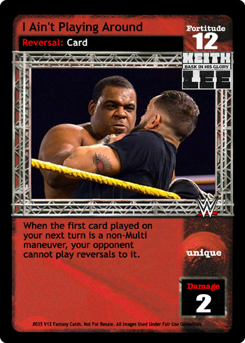 When the first card played on your next turn is a non-Multi maneuver, your opponent cannot play reversals to it.