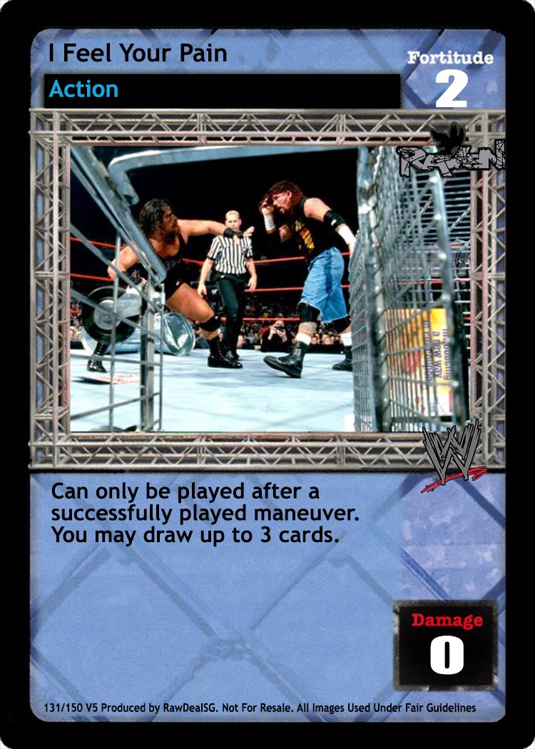 Cannot be blanked. When this card is in your Ring, it is also considered to be titled Evolution is a Mystery and European Uppercut, and your The Viper Strikes is F: 0. When this card is in your Ring or Ringside, your Battling The Voices is -6F and Multi, and when played you may replace the 'into your Ringside pile' text with 'on the bottom of your Arsenal'. ACE: When your opponent plays a maneuver, you may put this card into your Ringside and then shuffle your hand into your Arsenal and draw the same number of cards +2.