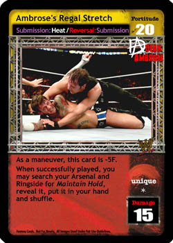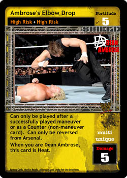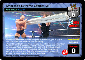 Can only be played after a successfully played maneuver or as a Counter (non-maneuver card). Can only be reversed from Arsenal. When you are Dean Ambrose, this card is Heat.