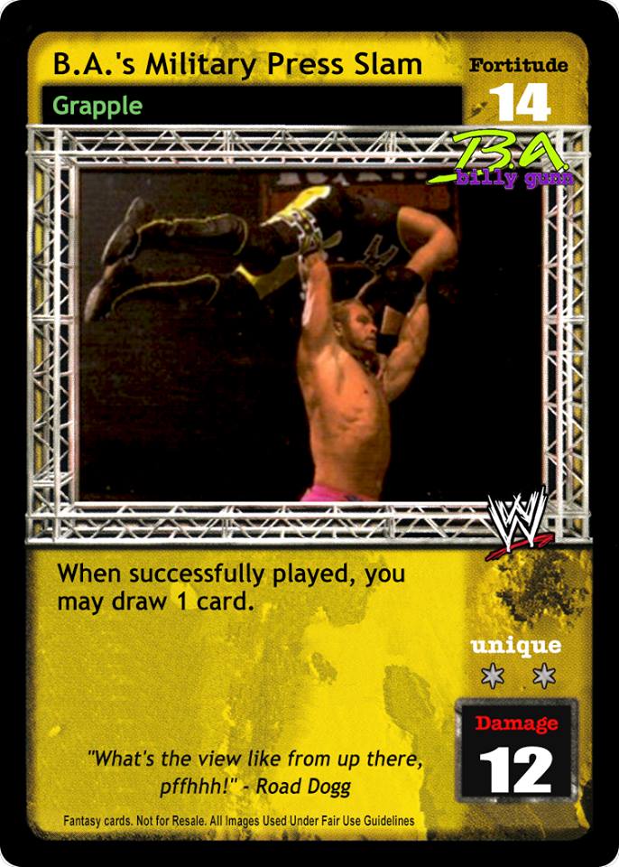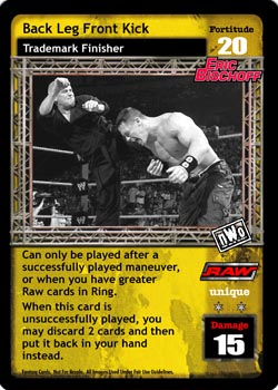 Can only be played after a successfully played maneuver, or when you have greater Raw cards in Ring. When this card is unsuccessfully played, you may discard 2 cards and then put it back in your hand instead.