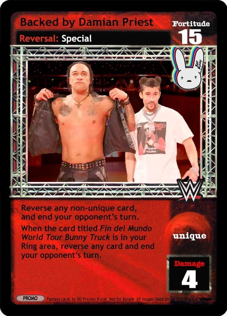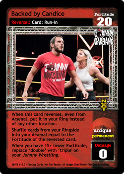 When this card reverses, even from Arsenal, put it in your Ring instead of any other location. Shuffle cards from your Ringside into your Arsenal equal to the Fortitude of the reversed card. When you have 15+ lower Fortitude, replace ‘double’ with ‘triple' on your Johnny Wrestling.
