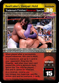 When played after a successfully played maneuver, this card is Multi. As a maneuver, put up to 1 card in your opponent's Ring into his Ringside, and when your next card played this turn is Maintain Hold, ignore the 'Can only be played...' text and it cannot be reversed. As a reversal, reverse any non-Unique non-Superstar-specific Action card and he overturns 3 cards.
