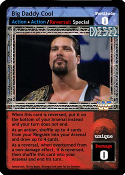 When this card is reversed, put it on the bottom of your Arsenal instead and your turn does not end. As a maneuver, shuffle up to 4 cards from your Ringside into your Arsenal and draw up to 4 cards. As a reversal, when overturned from a non-damage effect, it is reversed, then shuffle this card into your Arsenal and end his turn.