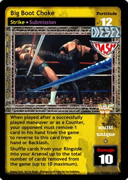 As a maneuver, when unsuccessfully played you may remove up to 3 maneuver cards from your opponent's Ringside pile from the game. As a reversal, reverse any Strike maneuver and end your opponent's turn.