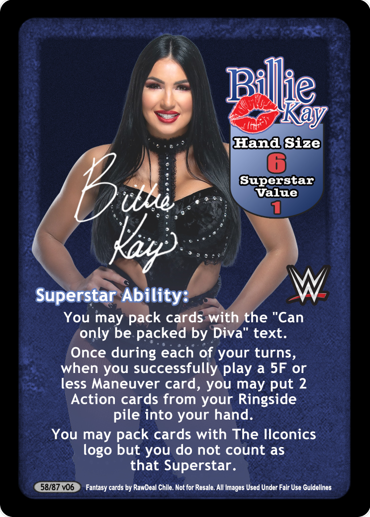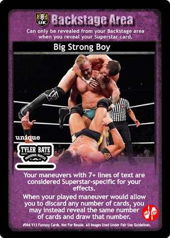 Your maneuvers with 7+ lines of text are considered Superstar-specific for your effects. When your played maneuver would allow you to discard any number of cards, you may instead reveal the same number of cards and draw that number.