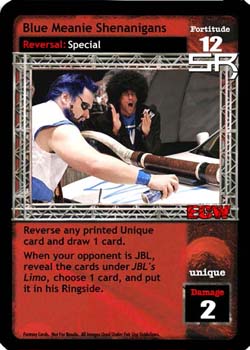 Reverse any printed Unique card and draw 1 card. When your opponent is JBL, reveal the cards under JBL's Limo, choose 1 card, and put it in his Ringside pile.