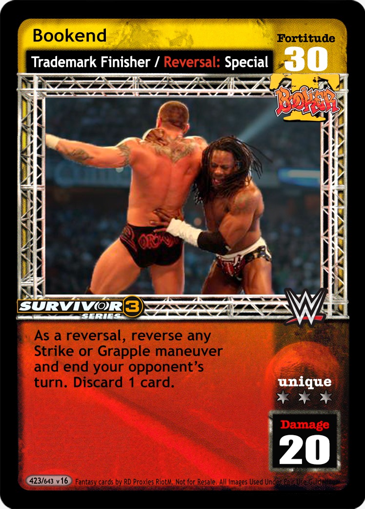 As a reversal, reverse any Strike or Grapple maneuver and end your opponent's turn. You must discard 1 card.