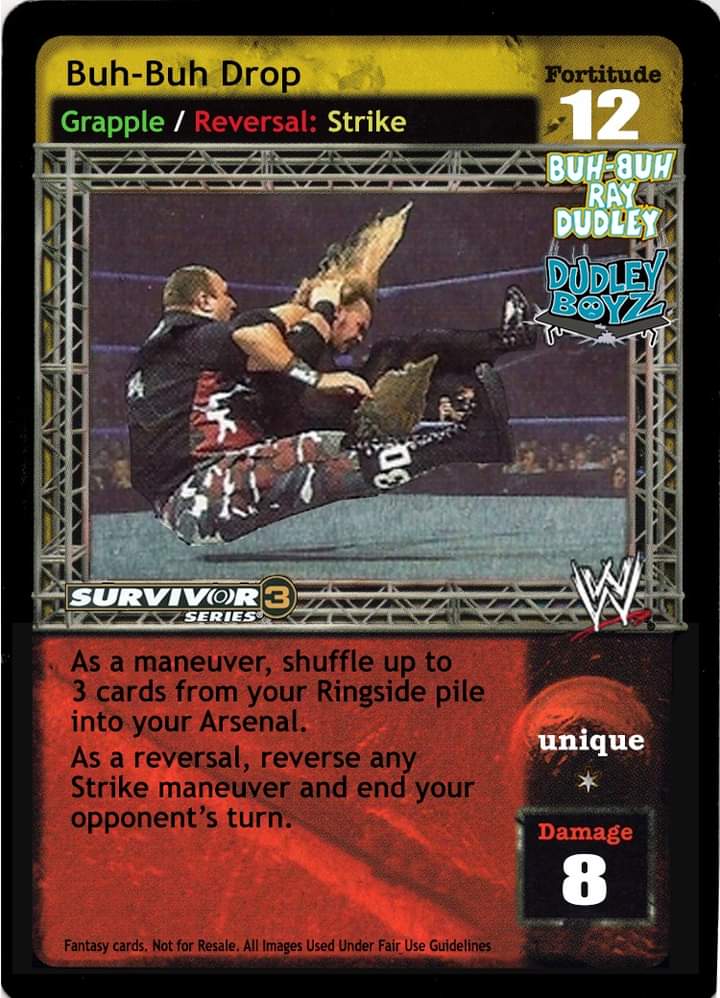 As a maneuver, shuffle up to 3 cards from your Ringside pile into your Arsenal. As a reversal, reverse any Strike maneuver and end your opponent's turn.
