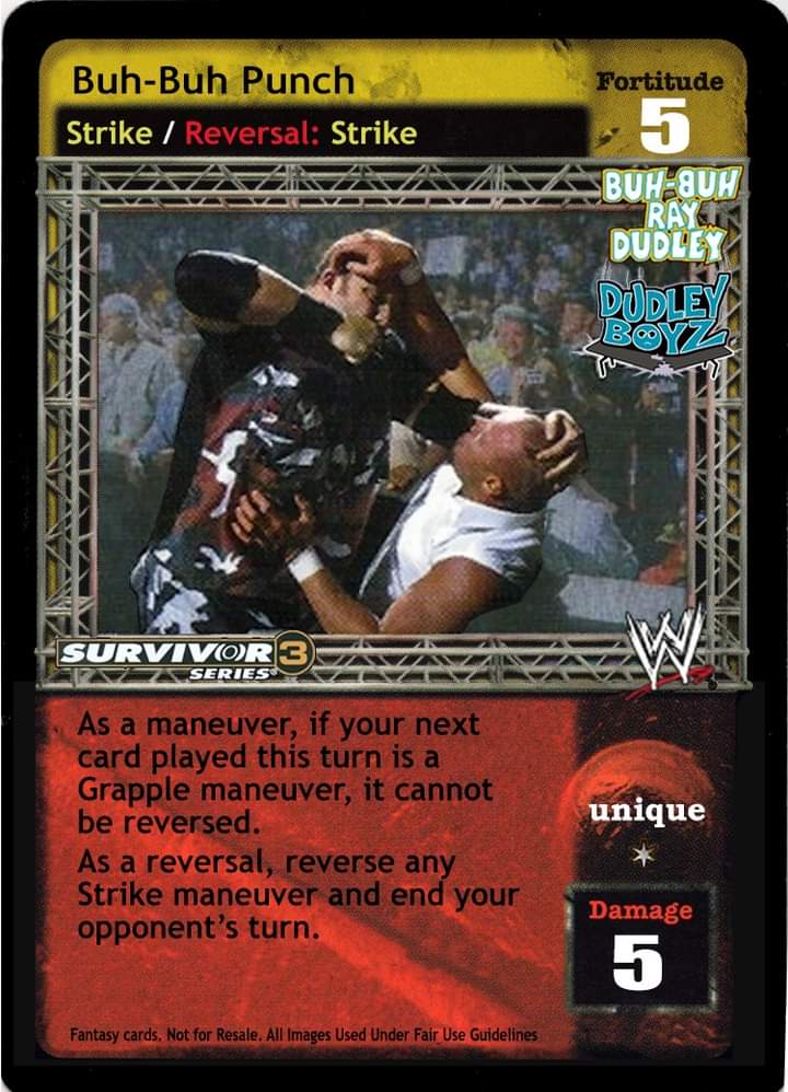 As a maneuver, this card is -10F and +3D and when played after a successfully played Grapple or Submission maneuver, can only be reversed from Arsenal. As a reversal, when played from hand, reverse any Grapple or Submission.
