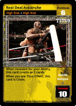 When revealed for your Ability, this card counts as 2 cards. When you are Titus O'Neil, this card is Chain.