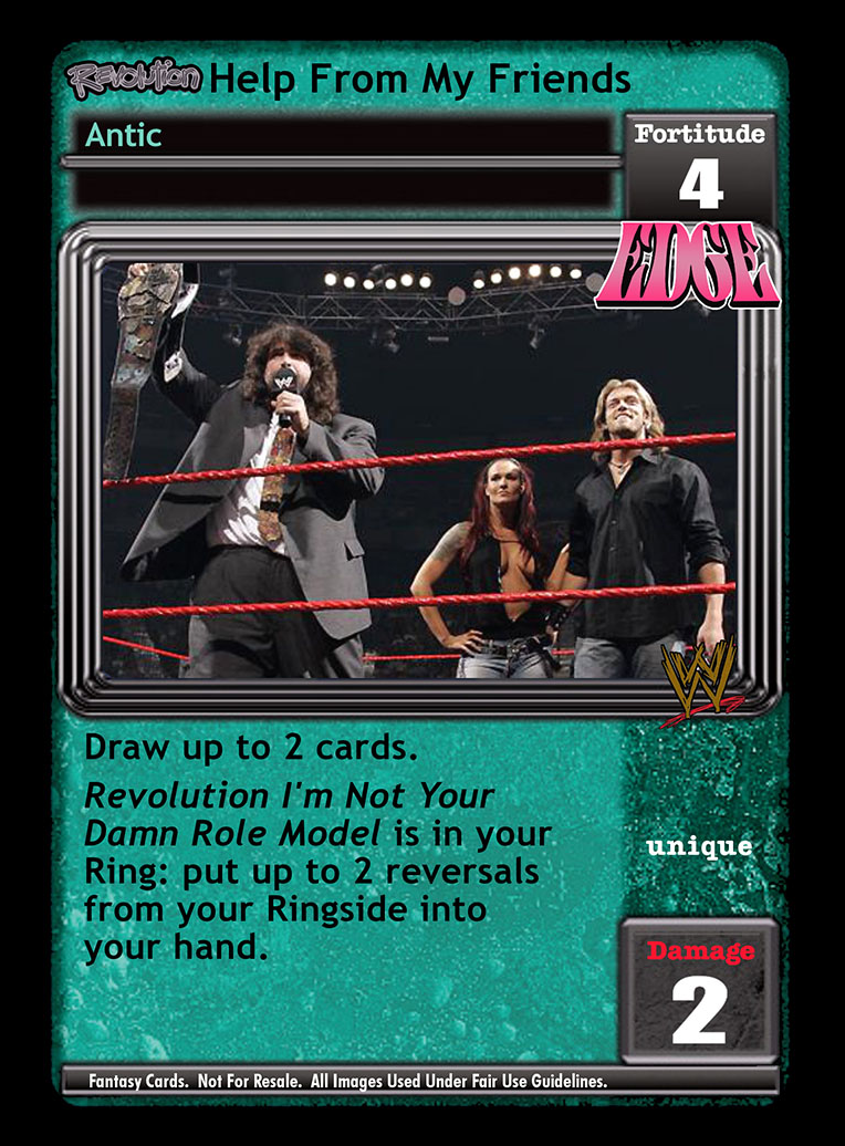 Draw up to 2 cards. Revolution I'm Not Your Damn Role Model is in your Ring: put up to 2 reversals from your Ringside into your hand.