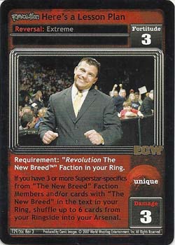 Requirement: 'Revolution The New Breed' Faction in your Ring. If you have 3 or more Superstar-specifics from 'The New Breed' Faction Members and/or cards with 'The New Breed' in the text in your Ring, shuffle up to 6 cards from your Ringside into your Arsenal.