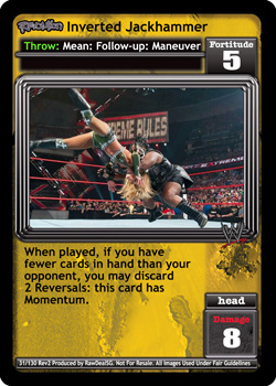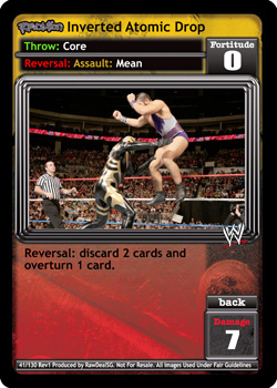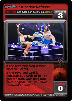 If the reversed card is Mean: discard 3 cards. If the reversed card is Colossal: put cards of D:1 or greater from your Ring into your Ringside until you have removed at least D:3.