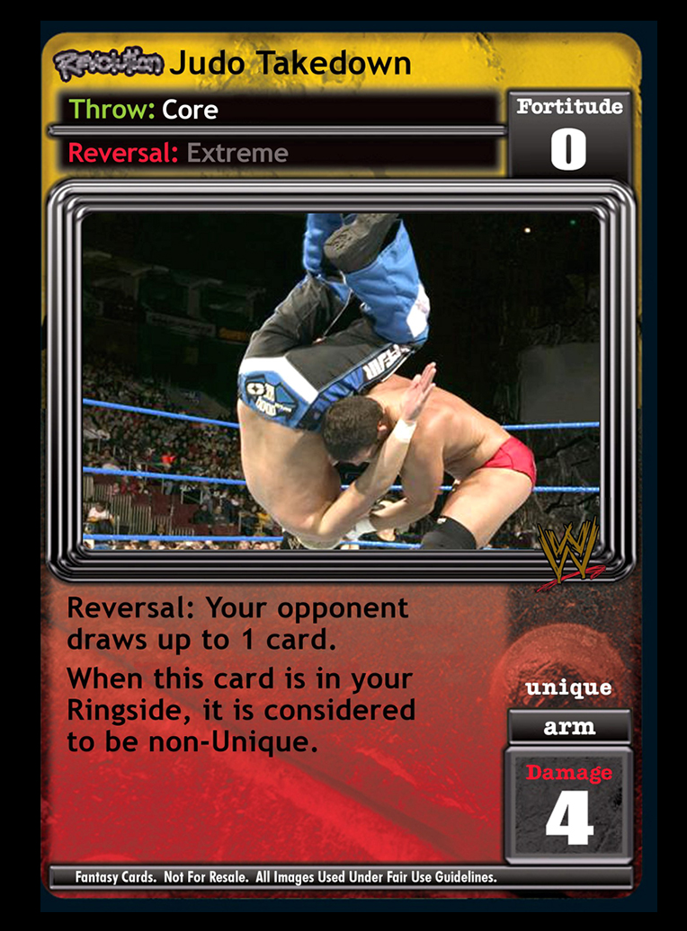 For every different maneuver type in your Ring, put up to 1 card from your Ringside on the bottom of your Arsenal. Draw up to 2 cards.