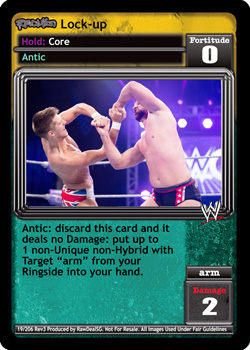 Put non-Unique Antics from your Ringside into your hand equal up to the number of Target 'leg' in your Ring.