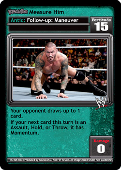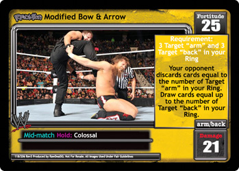 Requirement: 3 Target 'arm' and 3 Target 'back' in your Ring Your opponent discards cards equal to the number of Target 'arm' in your Ring. Draw cards equal up to the number of Target 'back' in your Ring.