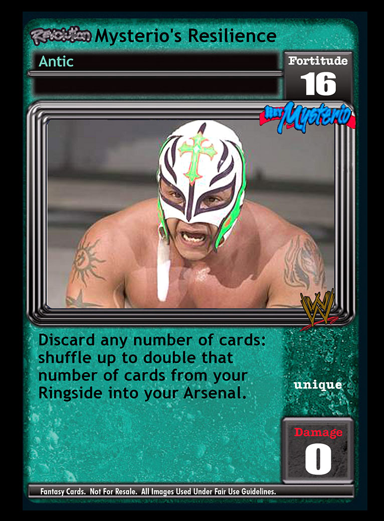 Discard any number of cards: shuffle up to double that number of cards from your Ringside pile into your Arsenal.