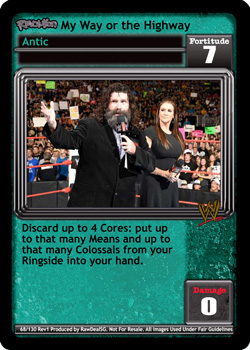Discard up to 4 Cores: put up to that many Means and up to that many Colossals from your Ringside into your hand