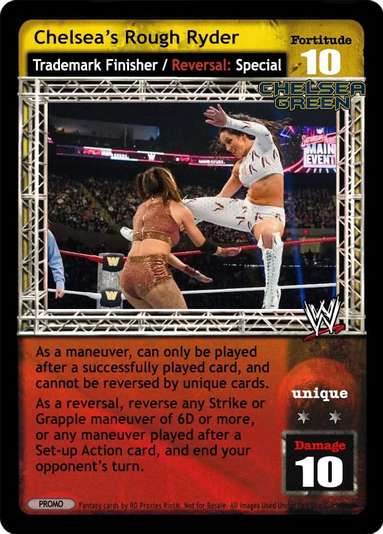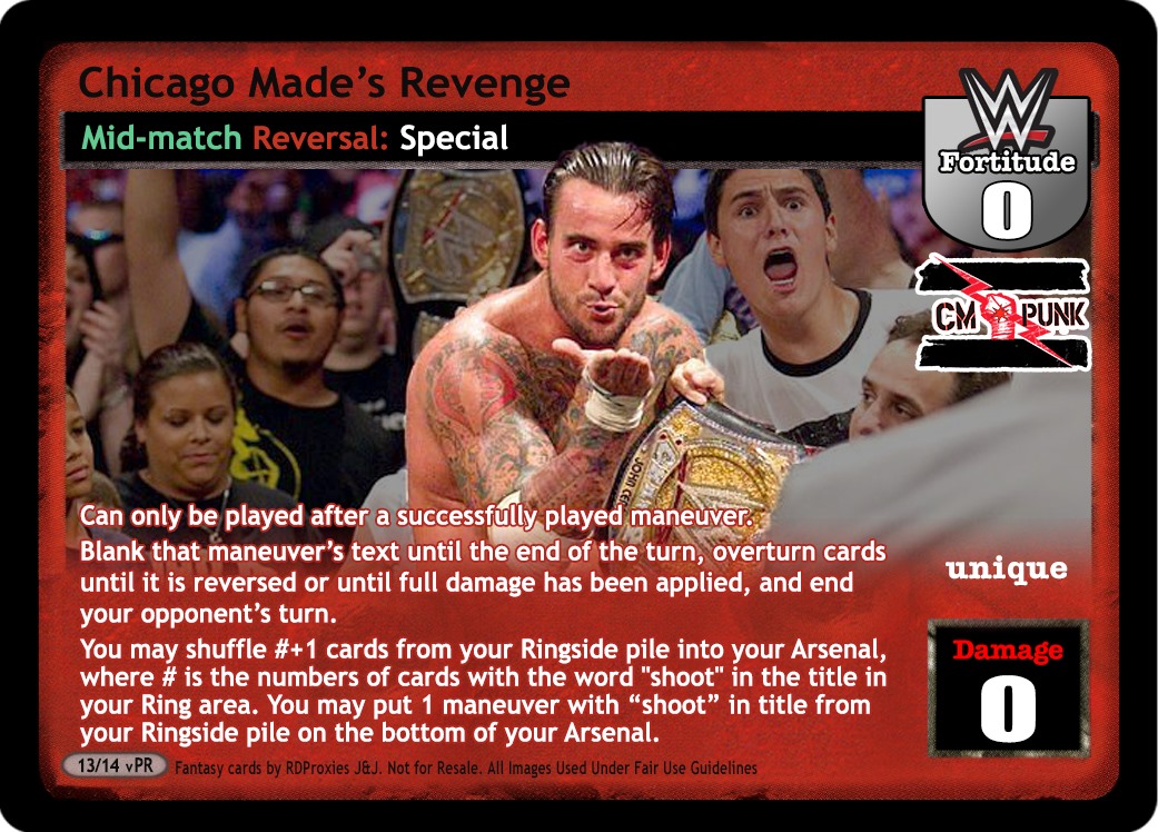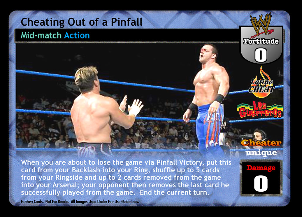 Reverse any non-Superstar-specific maneuver. When you have 4+ greater cards in hand, 4+ greater Stun Value in your Ring, and 14+ greater Fortitude, you win the game via Pinfall Victory.