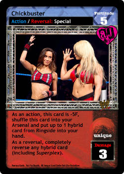 As a maneuver, can only be played after a successfully played card, and cannot be reversed by unique cards. As a reversal, reverse any Strike or Grapple maneuver of 6D or more, or any maneuver played after a Set-up Action card, and end your opponent's turn.