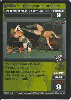 Your opponent discards 3 random cards. Put up to 3 Assaults and/or Throws from your Ringside into your hand.