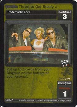Put up to 3 cards from your Ringside on the bottom of your Arsenal.