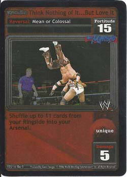 Less Fortitude: -5F Put up to 1 maneuver from your Ringside into your hand and shuffle up to 8 cards from your Ringside into your Arsenal.