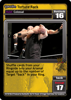 Shuffle cards from your Ringside into your Arsenal equal up to the number of Target 'back' in your Ring.