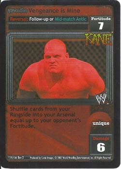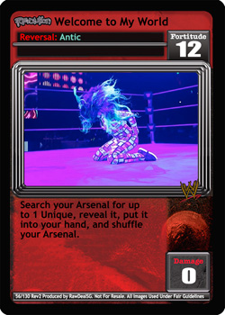 Shuffle cards from your Ringside into your Arsenal equal up to your opponent's Fortitude.