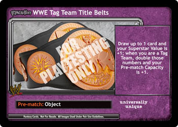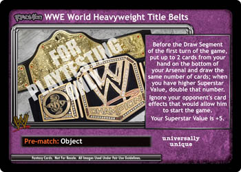 Requirement: Lower Superstar Value Your opponent cannot play Title Belts. His Superstar Value: -4