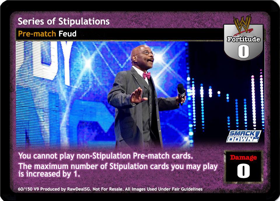 You cannot play non-Stipulation Pre-match cards. The maximum number of Stipulation cards you may play is increased by 1.