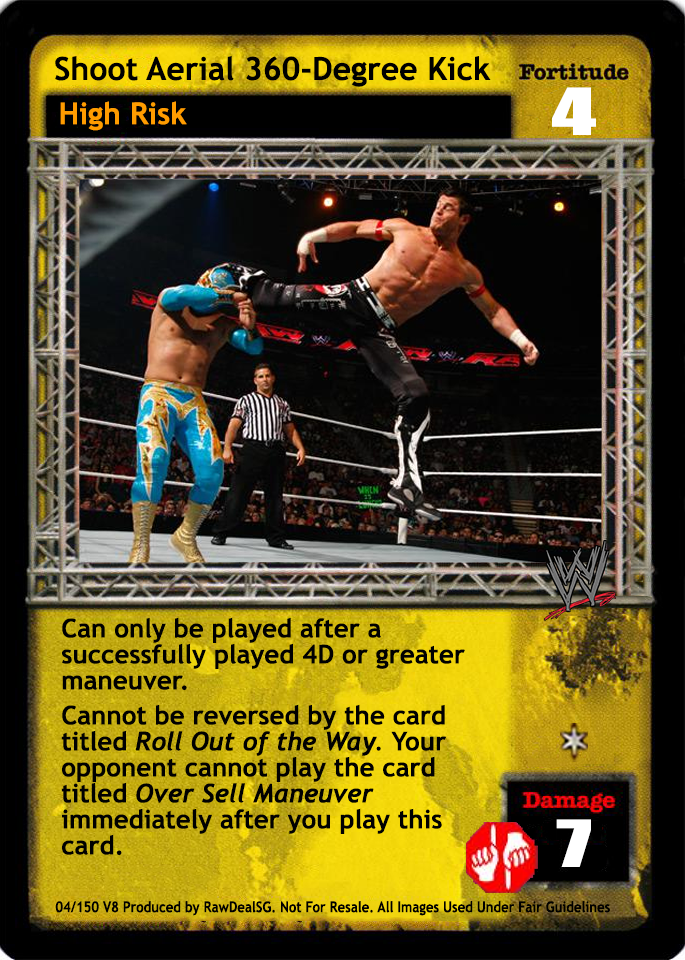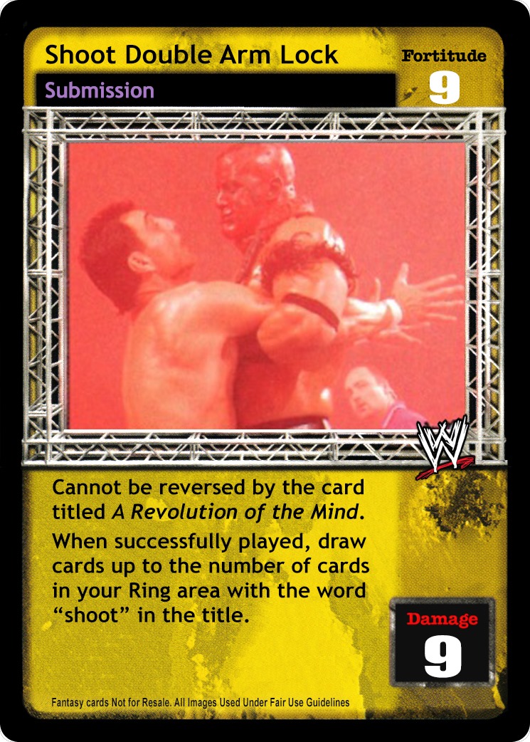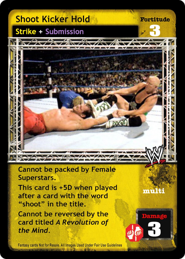 Cannot be packed by Female Superstars. This card is +5D when played after a card with the word "shoot" in the title. Cannot be reversed by the card titled A Revolution of the Mind.