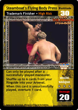 Can only be played after a successfully played maneuver. Shuffle up to 6 cards from your Ringside into your Arsenal. When this card is unsuccessful, overturn 1 card.