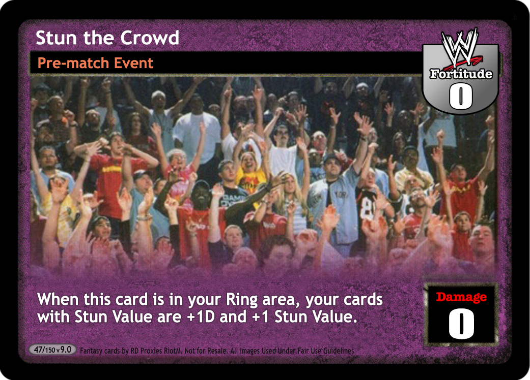 At the end of the Pre-match phase Promo: 4 and remove the cards not chosen from the game. When this card is in your Ring, your opponent’s printed Superstar-specific non-Trademark Finisher hybrid reversals do no more than 5D.