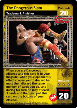 When you are Dangerous Alliance and this card is in your Ringside, when your opponent's effects cause you to discard he must then discard the same number of cards you do, and during his turn he may discard 3 cards and then you put this card on the bottom of your Arsenal.