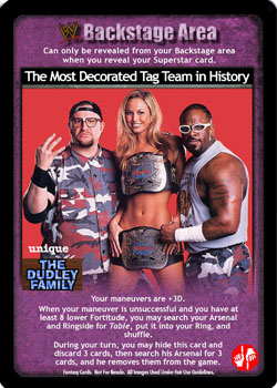 Your maneuvers are +3D. When your maneuver is unsuccessful and you have at least 8 lower Fortitude, you may search your Arsenal and Ringside for Table, put it into your Ring, and shuffle. During your turn, you may hide this card and discard 3 cards, then search his Arsenal for 3 cards, and he removes them from the game.