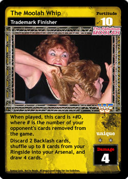 Can only be packed by an NXT Superstar. Cannot be packed when packing a Pro, The Nexus Armband, or From NXT to WWE. Cannot be blanked and can be played when your opponent has a Venue in his Ring. You can play The NXT Generation regardless of your Fortitude Rating, and when it is in your Ring, you may shuffle it into your Arsenal when you successfully play a Superstar-specific NXT card. Your NXT cards are -1F for every card in your Ring with 'fans' or 'crowd' in the title, and during any turn when you successfully play a Face, Heel, Cheater, or Fan Favorite card you may Promo: 2.