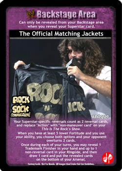 Your Superstar-specific reversals count as 2 reversal cards, and replace 'Action' with 'non-maneuver card' on your This Is The Rock's Show. When you have at least 5 lower Fortitude is in your Ring and you use your Ability, you choose both options and your opponent overturns 2 cards. Once during each of your turns, you may reveal 1 Trademark Finisher in your hand and up to 1 non-reversal card in your Ringside, and then draw 1 card and put the revealed cards on the bottom of your Arsenal.