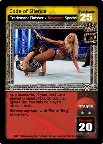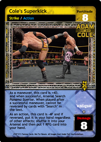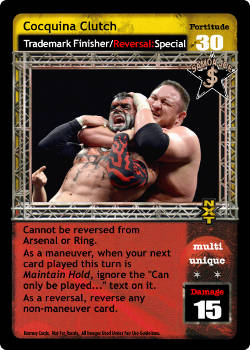 As a maneuver, can only be played after a successfully played card; when that card was a maneuver, your opponent discards 2 cards when successfully played, and when that card was From The Top Rope, can only be reversed from Arsenal. As a reversal, reverse any Strike or any maneuver played after either a Set-up card or a Follow-up card.
