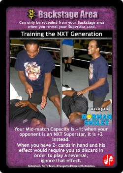 Your Mid-match Capacity is +1 (when your opponent is an NXT Superstar, it is +2 instead). When you have 2- cards in hand and his effect would require you to discard in order to play a reversal, ignore that effect.